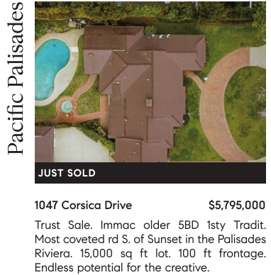 Trust Sale. Immac older 5BD 1sty Tradit. Most coveted rd S. of Sunset in the Palisades Riviera. 15,000 sq ft lot. 100 ft frontage. Endless potential for the creative.
