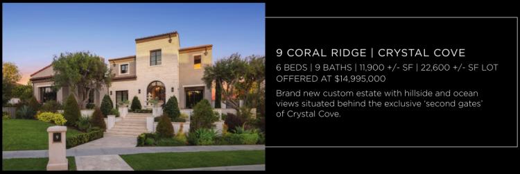 Brand new custom estate with hillside and ocean views situated behind the exclusive ‘second gates’ of Crystal Cove.