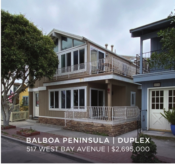 BALBOA PENINSULA | DUPLEX 517 WEST BAY AVENUE | $2,695,000