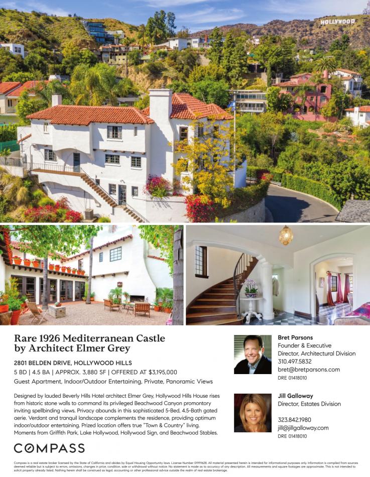 Designed by lauded Beverly Hills Hotel architect Elmer Grey, Hollywood Hills House rises from historic stone walls to command its privileged Beachwood Canyon promontory inviting spellbinding views. Privacy abounds in this sophisticated 5-Bed, 4.5-Bath gated aerie. Verdant and tranquil landscape complements the residence, providing optimum indoor/outdoor entertaining. Prized location offers true “Town & Country” living. Moments from Griffith Park, Lake Hollywood, Hollywood Sign, and Beachwood Stables.