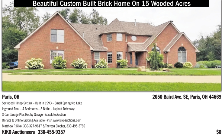 - Absolute Auction On-Site & Online Bidding Available - Visit www.kikoauctions.com Matthew P. Kiko, 330-327-9617 & Theresa Blocher, 330-495-3789 KIKO Auctioneers 330-455-9357 $0
