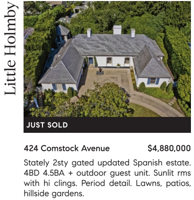 Stately 2sty gated updated Spanish estate. 4BD 4.5BA + outdoor guest unit. Sunlit rms with hi clings. Period detail. Lawns, patios, hillside gardens.