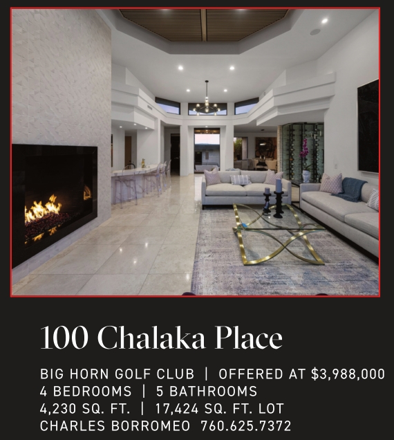 BIG HORN GOLF CLUB | OFFERED AT $3,988,000 4 BEDROOMS | 5 BATHROOMS 4,230 SQ. FT. | 17,424 SQ. FT. LOT CHARLES BORROMEO 760.625.7372