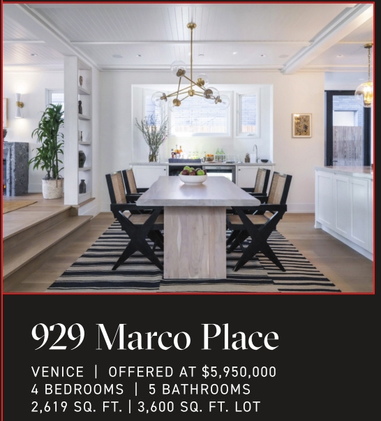VENICE | OFFERED AT $5,950,000 4 BEDROOMS | 5 BATHROOMS 2,619 SQ. FT. | 3,600 SQ. FT. LOT