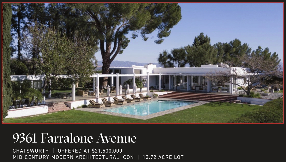 CHATSWORTH | OFFERED AT $21,500,000 MID-CENTURY MODERN ARCHITECTURAL ICON | 13.72 ACRE LOT