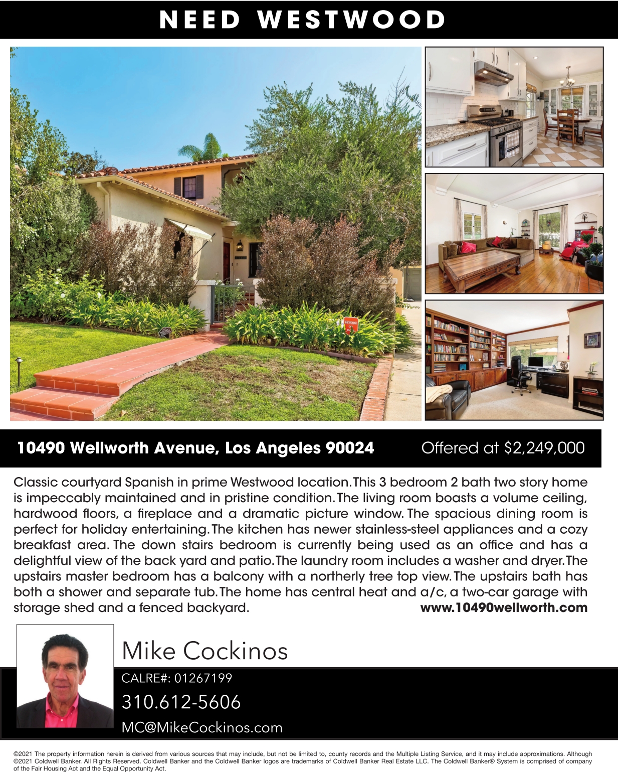 10490 Wellworth Avenue, Los Angeles 90024 Offered at $2,249,000