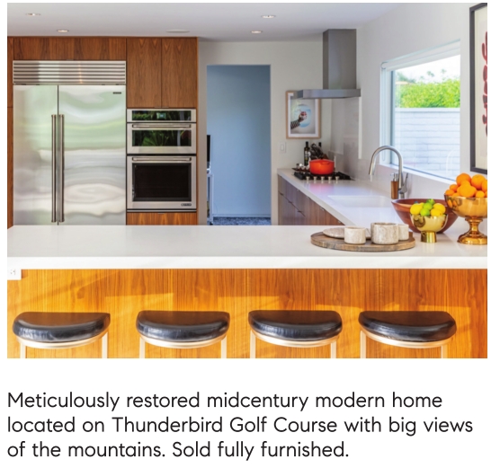Meticulously restored midcentury modern home located on Thunderbird Golf Course with big views of the mountains. Sold fully furnished.
