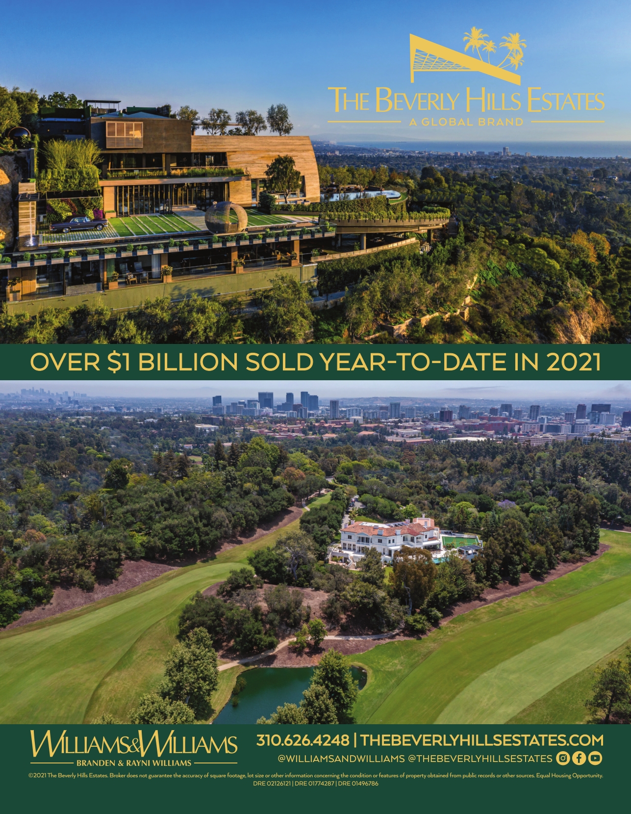 OVER $1 BILLION SOLD YEAR-TO-DATE IN 2021 310.626.4248 | THEBEVERLYHILLSESTATES.COM ©2021 The Beverly Hills Estates. Broker does not guarantee the accuracy of square footage, lot size or other information concerning the condition or features of property obtained from public records or other sources. Equal Housing Opportunity. DRE 02126121 |DRE 01774287 |DRE 01496786