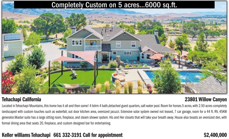 Keller williams Tehachapi 661 332-3191 Call for appointment $2,400,000