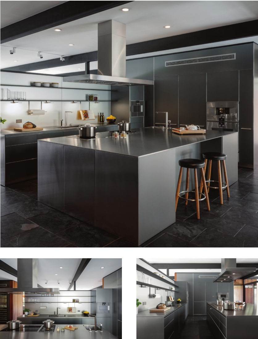 The affinity between Bulthaup and Gaggenau is also connected by their German heritage. Interestingly, both brands have limited manufacturing locations, allowing for tight control and customization capabilities. And they are known for their crisp stainless steel, exquisitely produced products. Both believe that minimal but functional designs are timeless and that the combination of craftsmanship with state-of-the-art German manufacturing to create precise, functional modern kitchens is the foundation of premium excellence. Bulthaup kitchens, outfitted with Gaggenau appliances, shape spaces that, in the philosophy of Le Corbusier, “forgea range of harmonious measurements to suit the human scale, universally applicable to architecture and to mechanical things.”