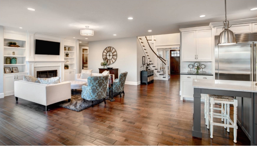 “Consistent maintenance is important. Never use aggressive or harsh cleaners on your hardwoods. Always start with a dry mop cleaning, then damp water cleaning, and use a mild cleaner that is recommended by your hardwood expert,” advises Scott Johnston. “Above all, never use wax-based products.”