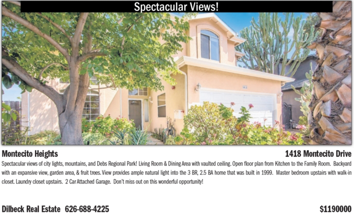 BA home that was built in 1999. Master bedroom upstairs with walk-in closet. Laundry closet upstairs. 2 Car Attached Garage. Don’t miss out on this wonderful opportunity! Dilbeck Real Estate 626-688-4225 $1190000