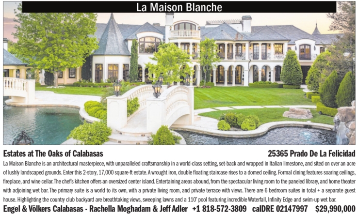 Engel & Völkers Calabasas - Rachella Moghadam & Jeff Adler +1 818-572-3809 calDRE 02147997 $29,990,000