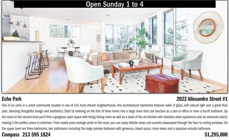 space, more views and a spacious ensuite bathroom. Compass 213 595 1824 $1,295,000