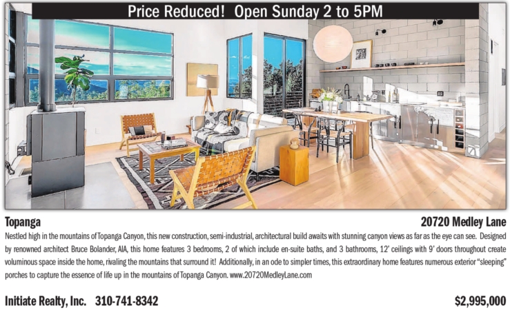 capture the essence of life up in the mountains of Topanga Canyon. www.20720MedleyLane.com Initiate Realty, Inc. 310-741-8342 $2,995,000