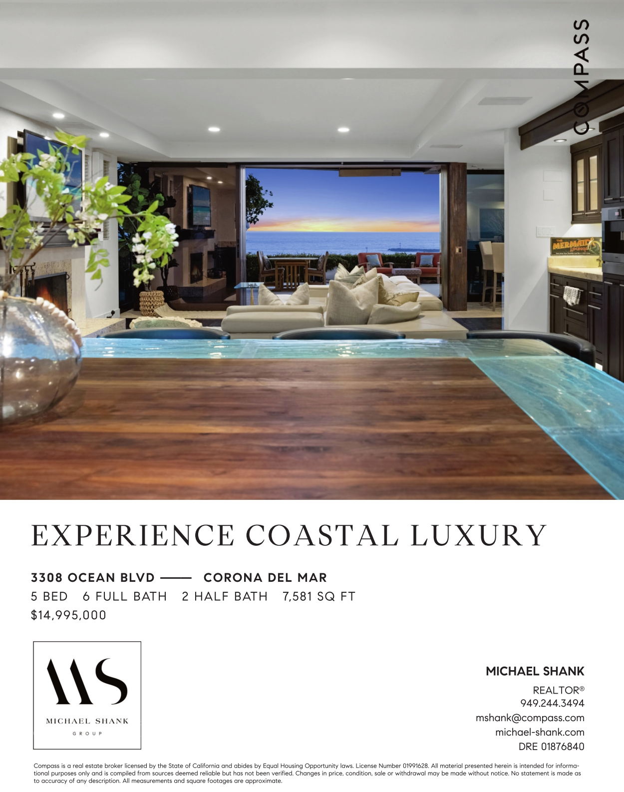 $14,995,000 MICHAEL SHANK REALTOR ® 949.244.3494 mshank@compass.com