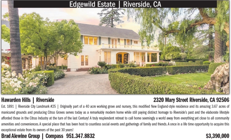 exceptional estate from its owners of the past 30 years! Brad Alewine Group | Compass 951.347.8832 $3,390,000