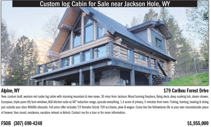 your own mountainside piece of heaven. Year round, residence, vacation retreat or Airbnb. Contact me for a tour or for more information. FSOB (307) 690-4248 $1,955,000