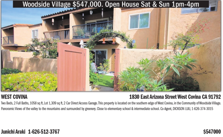 Woodside Village $547,000. Open House Sat & Sun 1pm-4pm WEST COVINA 1830 East Arizona Street West Covina CA 91792 Two