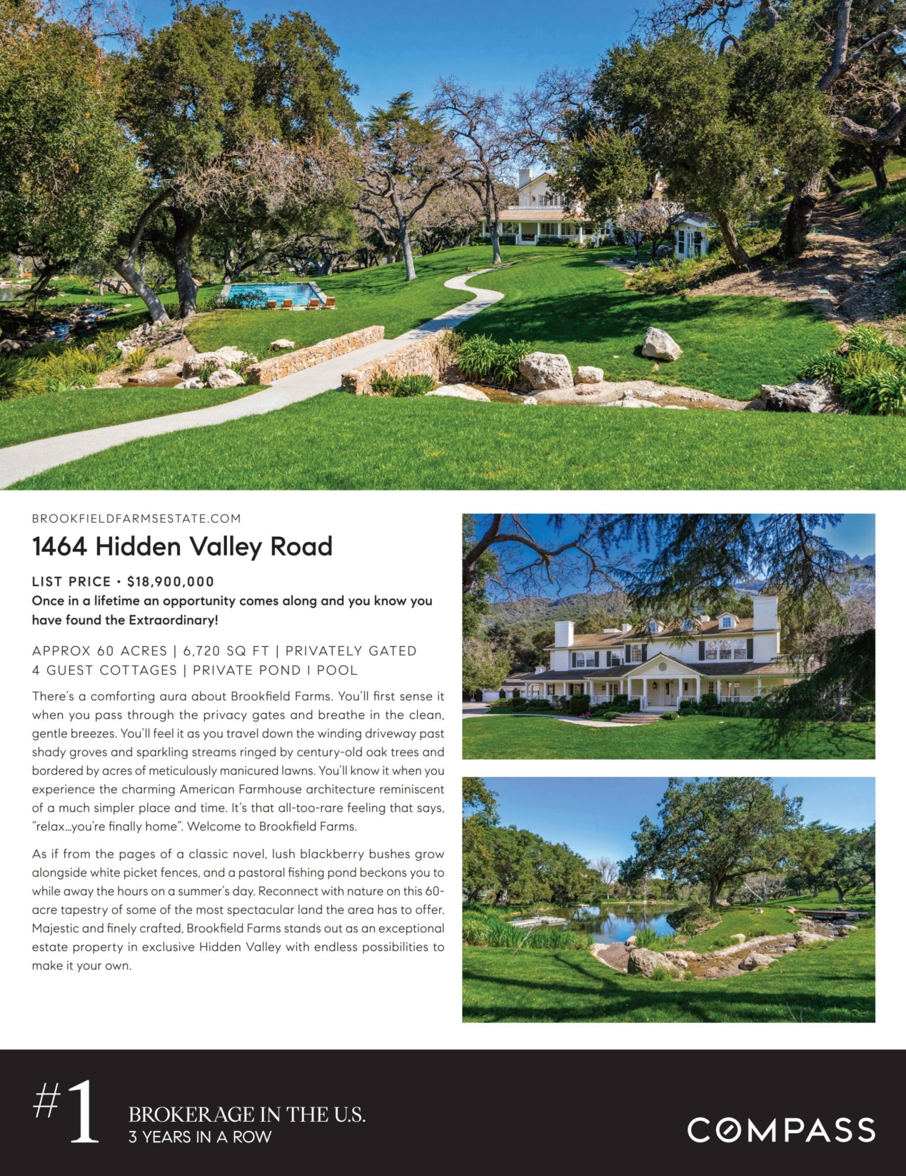 As if from the pages of a classic novel, lush blackberry bushes grow alongside white picket fences, and a pastoral fishing pond beckons you to while away the hours on a summer's day. Reconnect with nature on this 60-acre tapestry of some of the most spectacular land the area has to offer. Majestic and finely crafted, Brookfield Farms stands out as an exceptional estate property in exclusive Hidden Valley with endless possibilities to make it your own.