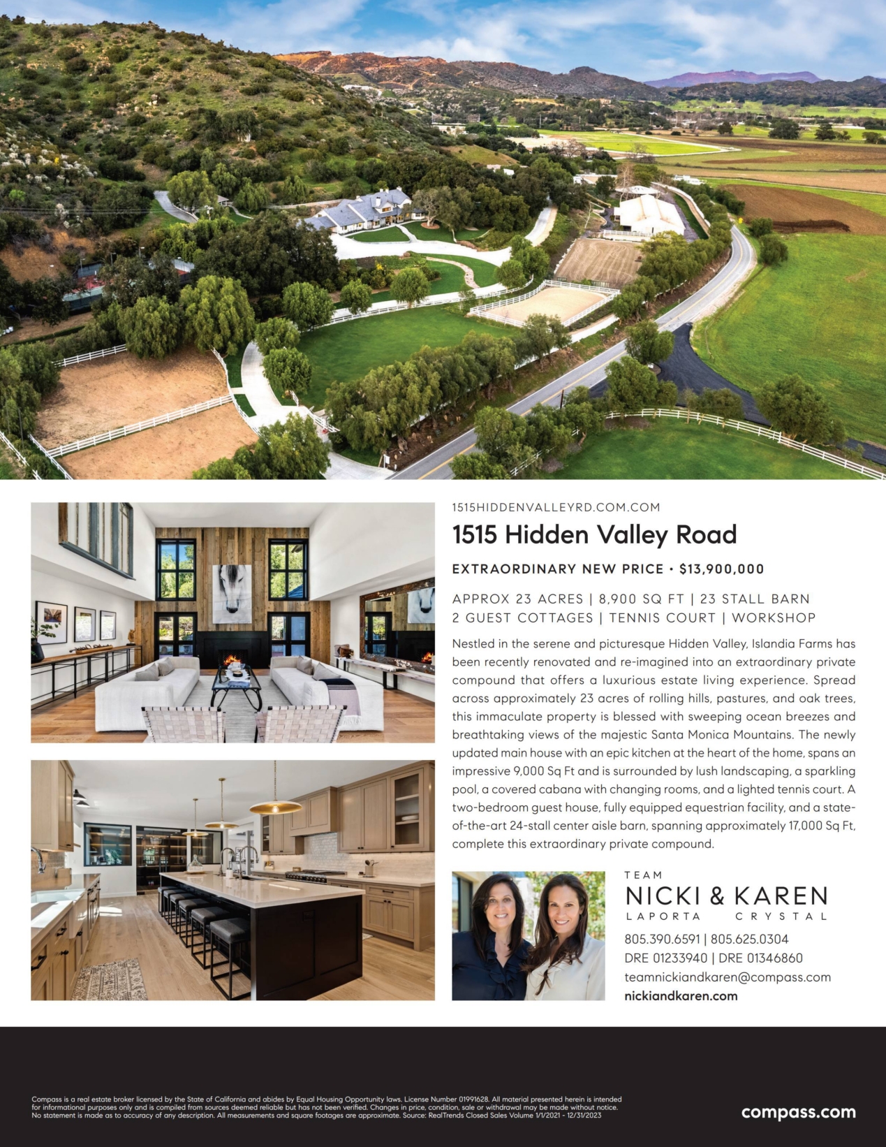 805.390.6591 | 805.625.0304 DRE 01233940 | DRE 01346860 teamnickiandkaren@compass.com nickiandkaren.com