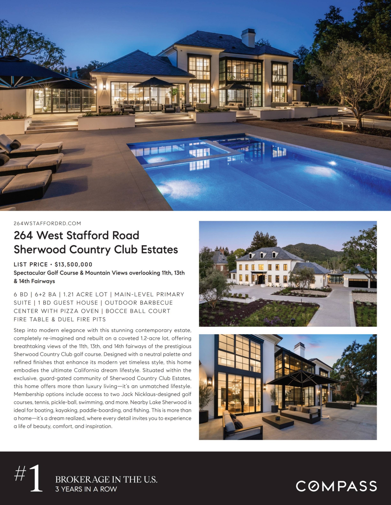 Step into modern elegance with this stunning contemporary estate, completely re-imagined and rebuilt on a coveted 1.2-acre lot, offering breathtaking views of the 11th, 13th, and 14th fairways of the prestigious Sherwood Country Club golf course. Designed with a neutral palette and refined finishes that enhance its modern yet timeless style, this home embodies the ultimate California dream lifestyle. Situated within the exclusive, guard-gated community of Sherwood Country Club Estates, this home offers more than luxury living—it's an unmatched lifestyle. Membership options include access to two Jack Nicklaus-designed golf courses, tennis, pickle-ball, swimming, and more. Nearby Lake Sherwood is ideal for boating, kayaking, paddle-boarding, and fishing. This is more than a home—it's a dream realized, where every detail invites you to experience a life of beauty, comfort, and inspiration. #1 BROKERAGE IN THE U.S. 3 YEARS IN A ROW COMPASS