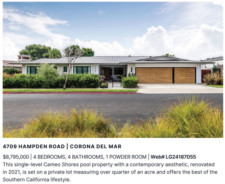 $8,795,000 | 4 BEDROOMS, 4 BATHROOMS, 1 POWDER ROOM | Web# LG24187055