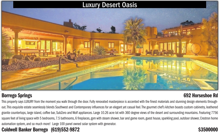 Coldwell Banker Borrego (619)552-9872 $3500000