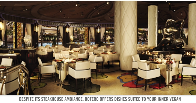 Though it´s hard to find a completely vegan eatery in Sin City, a number of high-end restaurants on the Strip have introduced fairly fabulous vegan menus. One of the best can be found at Botero, a modern steakhouse at Encore. And while this romantic spot clearly caters to carnivores, the collaboration between rising culinary star Mark LoRusso and vegan celebrity chef and cookbook author Tal Ronnen has resulted in tasty selections for the non-meat-eaters among us.