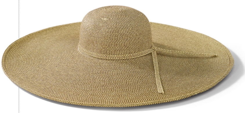 You’ll wilt in a Sin City second without a good sun hat. This one of paper straw and polyester has a ribbed finish and an 8-inch brim. It’s Hollywood glamour meets desert drab.