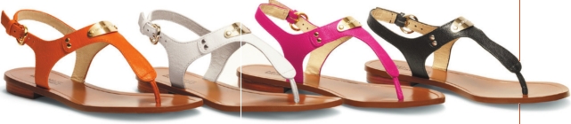 Logo-Plate Leather Thong Sandal, $98; Michael Kors at the Forum Shops; www.caesarspalace.com