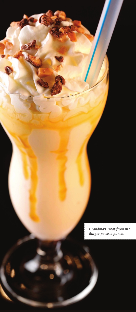 BLT BURGER Better bring your I.D. The sundaes and floats here are spiked with Kahlua, Jack Daniels, Bacardi Silver Rum and other high-octane liquids. “Grandma’s Treat” packs a punch with Maker’s Mark bourbon, caramel syrup and vanilla ice cream.
