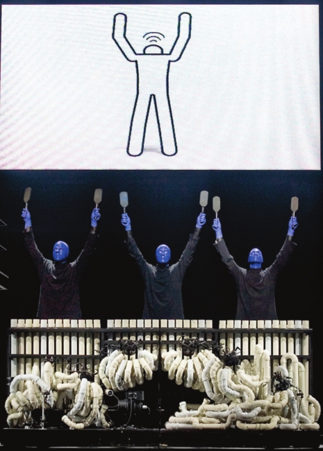 The three guys in greasepaint are up to their usual shenanigans, splattering paint, eating Twinkies and making primal music with PVC pipe. It’s vaudevillian fun in the age of technology. “My favorite part of the show is when we go out in the audience and interact with different people, from the 5-year-old who is really excited to the middle-aged guy who hasn’t rocked out in a while to the older folks who are a little unsure of the Blue Man but end up pleasantly surprised at what a great time they are having,” said longtime Blue Man Scott Kinworthy.