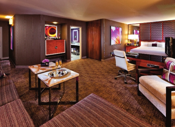 This month, the MGM wraps one of Sin City’s largest remodels in recent years at a cost of $160 million. The hotel’s 3,570 guest rooms and 642 suites in the main tower have been made over in earth tones with pops of platinum, tangerine and fuchsia, and eco-friendly touches have been added like LED lighting, solar shades and biodegradable bath amenities. High-tech accouterments include media hubs and flat-screen HD TVs, not yet available when the Strip-side resort debuted nearly two decades ago. The renovations are not all in-room — the hotel’s casino, restaurants and clubs also received upgrades.