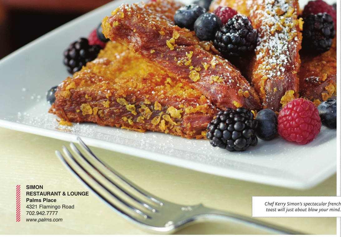 Simon Rock star chef Kerry Simon brings a funky, innovative twist to his ultra-hip eatery, Simon Restaurant & Lounge. Fabulous music, floor-to-ceiling windows with glorious views of the Strip, hordes of beautiful people, plus organic cuisine — what’s not to love? The imaginatively decadent brunch is renowned — lobster brioche, M&M pancakes and the ultimate “Junk Food Plate” complete with homemade Snowballs, Rice Krispies treats and Hostess cupcakes. Wash it down with bottomless beer, all-you-can-drink mimosas or bellinis, or make-yourown Bloody Marys. Not for the faint of heart, but you only live once, right? See also