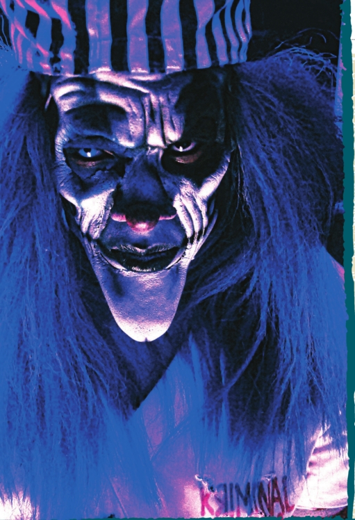 terrifying prison escapee at Fright Dome; a typically disturbing scene