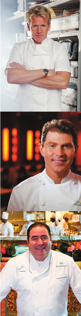 From top to bottom: Gordon Ramsay, Bobby Flay, Emeril Lagasse and Rick Moonen