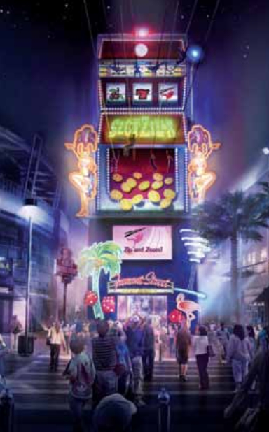 In true Vegas form, every time a rider leaves, the giant slot machine’s arm will pull down, the reels will spin and a beacon will light up.