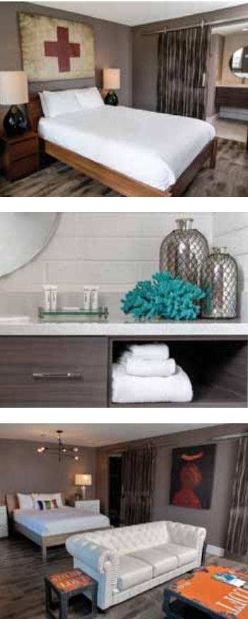 Charming and imaginative, Oasis at Gold Spike is a happening haven where visitors can enjoy a gently irreverent 1970s college dorm-like aura (guest rooms and suites are referred to as “Crash Pads”) updated with property-wide Wi-Fi and flat screen TVs — all without the bell bottoms.