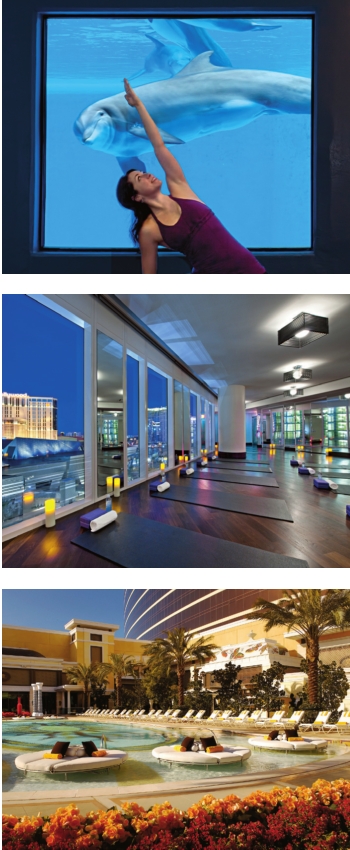Trump International Hotel Las Vegas offers a rotation of daily yoga classes overlooking the Strip too, including vinyasa, Qi (gentle movements that allow participants to breathe more deeply as they stretch their mind and body) and “yogalates” (a fusion of Pilates and vinyasa). Priced at $12, each hour-long class is held outside on the property’s seventh-floor north deck or, dependent on weather, in its studio on the 19th floor. www.trumphotelcollection.com/ las-vegas