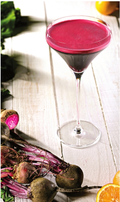 beet juice, lemon juice and mandarin syrup to create a savory yet sweet