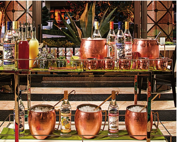 Jardin in Encore Las Vegas offers a Moscow Mule trolley with individual cocktails and a large-format version — a colossal copper mug that fits an entire bottle of vodka.