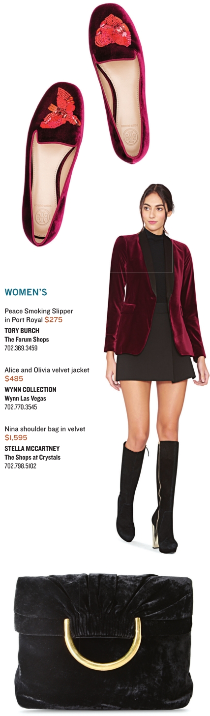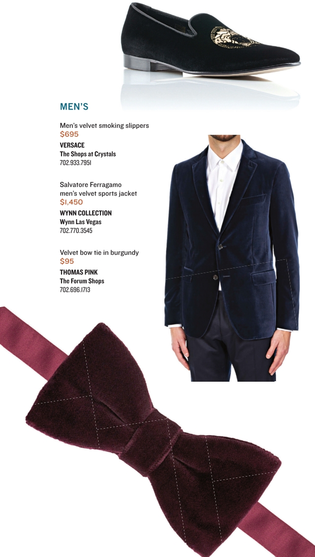 From shoes to bags to sports coats, velvet is making an impact on the fashion scene this holiday season. Embrace opulence. Mix velvet into your wardrobe now and end your year looking luxe.