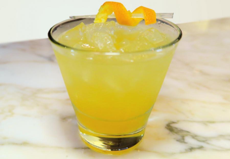 Knight” cocktail. This yellow-gold cocktail is made with Jack Daniels