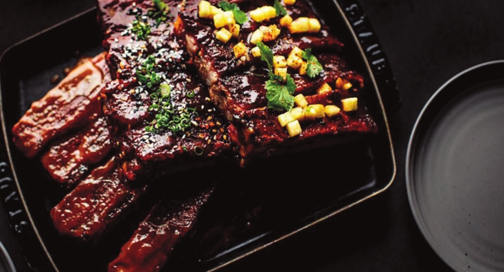 But let's talk about the ribs: think St. Louis style with three distinct spice blends and finished with signature sauces, including: American Barbeque with Smokey Mama Sauce; Vietnamese Lemongrass with Saigon Streusel and Korean Sesame-Gochujang with toasted black sesame seeds.