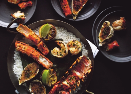 On the seafood side of the menu, a shellfish platter comes filled with charcoal-grilled oysters, shrimp, lobster and crab, served hot and steamed tableside with lemon grass tea.