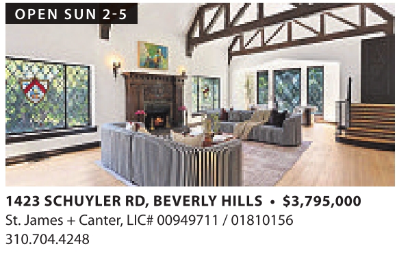 OPEN SUN 2-5 1423 SCHUYLER RD, BEVERLY HILLS • $3,795,000 St. James + Canter, LIC# 00949711 / 01810156 310.704.4248 See also