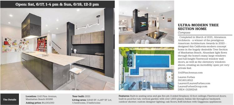 Features: Built-in seating area and gas fire pit; 2-sided fireplace; 12-foot ceilings; Fleetwood doors; built-in pool/hot tub; vertical garden with over 1,600 plants; Italian tile throughout backyard; outdoor shower; custom designer lighting; oak floors; Boffi kitchen with Gaggenau appliances