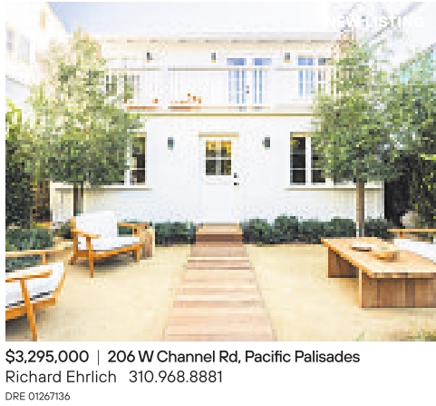 NEW LISTING $3,295,000 | 206WChannel Rd, Pacific Palisades Richard Ehrlich 310.968.8881 DRE 01267136 See also