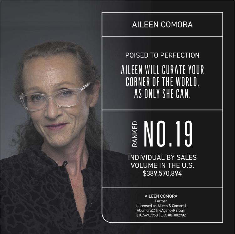 Partner (Licensed as Aileen S Comora) AComora@TheAgencyRE.com 310.569.7950 | LIC. #01002982